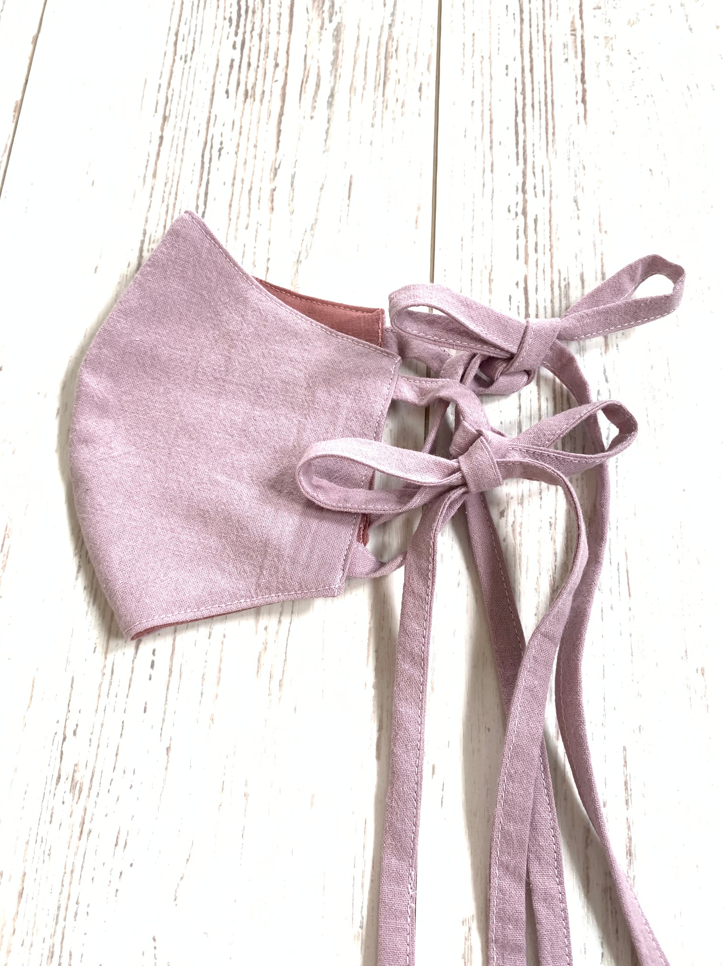 肌触りのいいリネン素材のリボンマスク